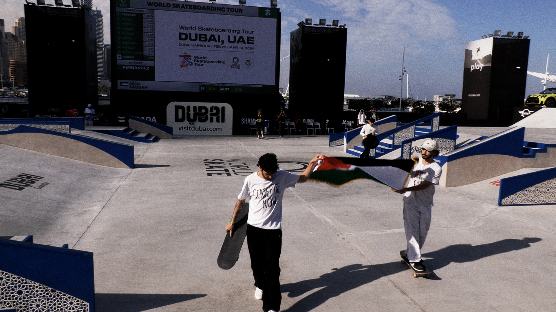 Aram n’a jamais cherché la qualification olympique. Son ambition dépasse la compétition. Par son skateboard, il veut transmettre un message de résilience, de résistance et d’espoir. Dans un contexte où la guerre tente de faire taire et d’effacer la Palestine, Aram roule pour affirmer une vérité simple et puissante : les Palestiniens existent — au-delà des gros titres, au-delà des chiffres, en tant qu’êtres humains et porteurs d’une culture vivante.